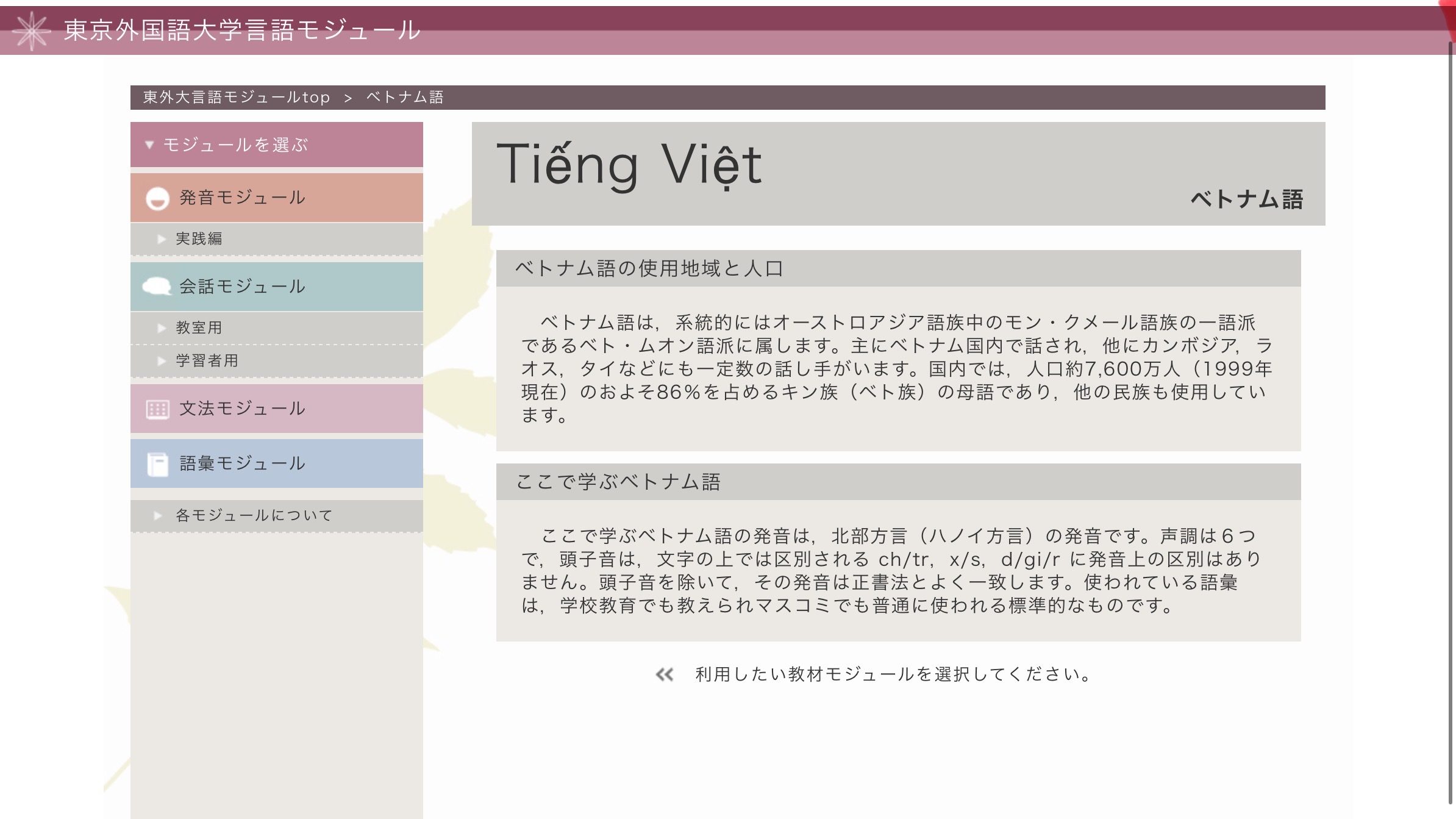 まず紹介したいのが、東京外国語大学言語モジュールです。